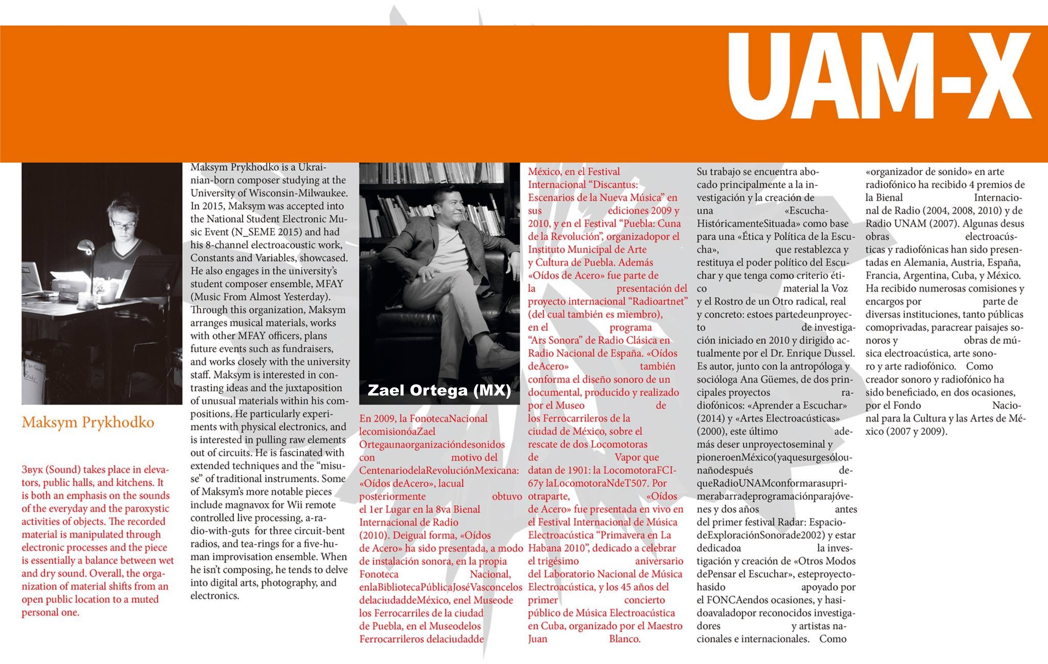 2016. Presentación de obra en MUSLAB: Muestra Internacional de Música Electroacústica, la cual tuvo como sedes la Coventry University del Reino Unido (UK) y el Espacio Sonoro de la UAM-Xochimilco.