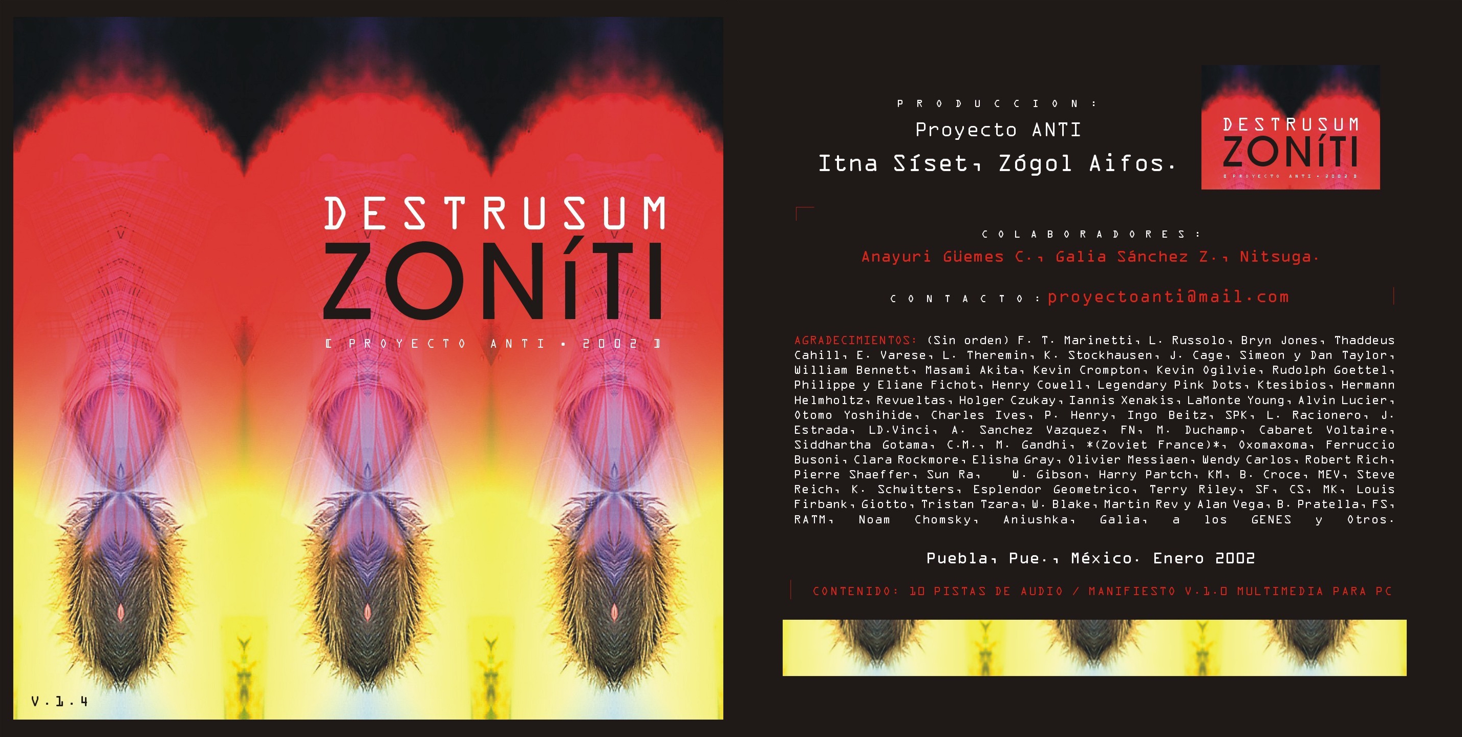 2002. Presentación del proyecto de creación sonora Destrusum Zoníti en el Instituto de Artes Visuales del Estado de Puebla.