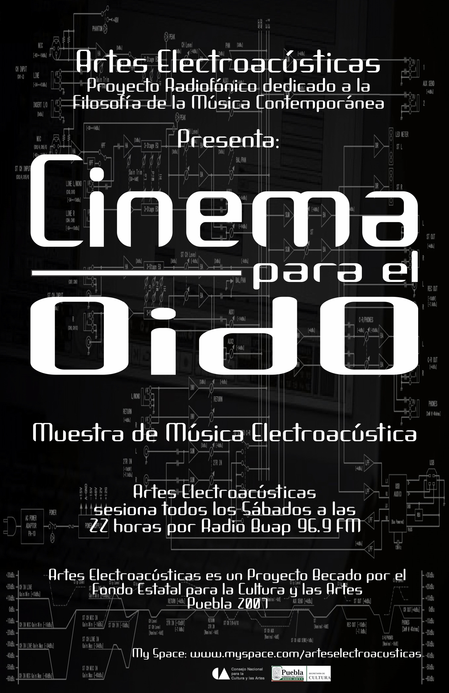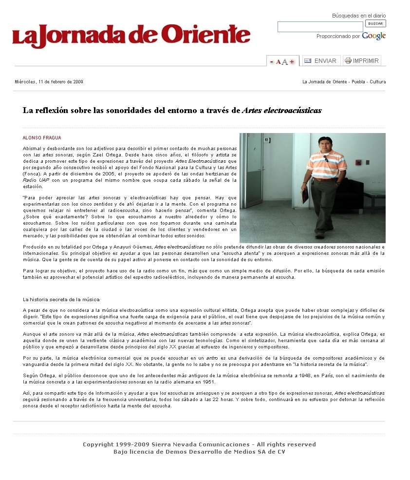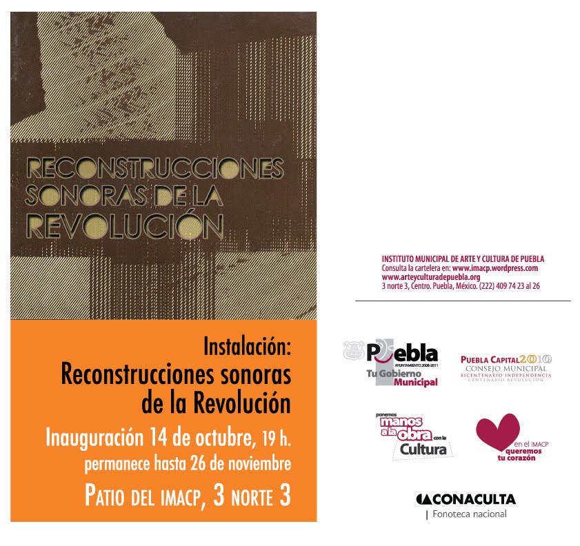 2010. Presentación del Segundo Seminario de Arte Radiofónico en la Universidad Autónoma de Puebla, el cual fue impartido por el Dr. José Iges y el filósofo y artista radiofónico Emiliano López Rascón, en el Edificio Carolino de la BUAP.