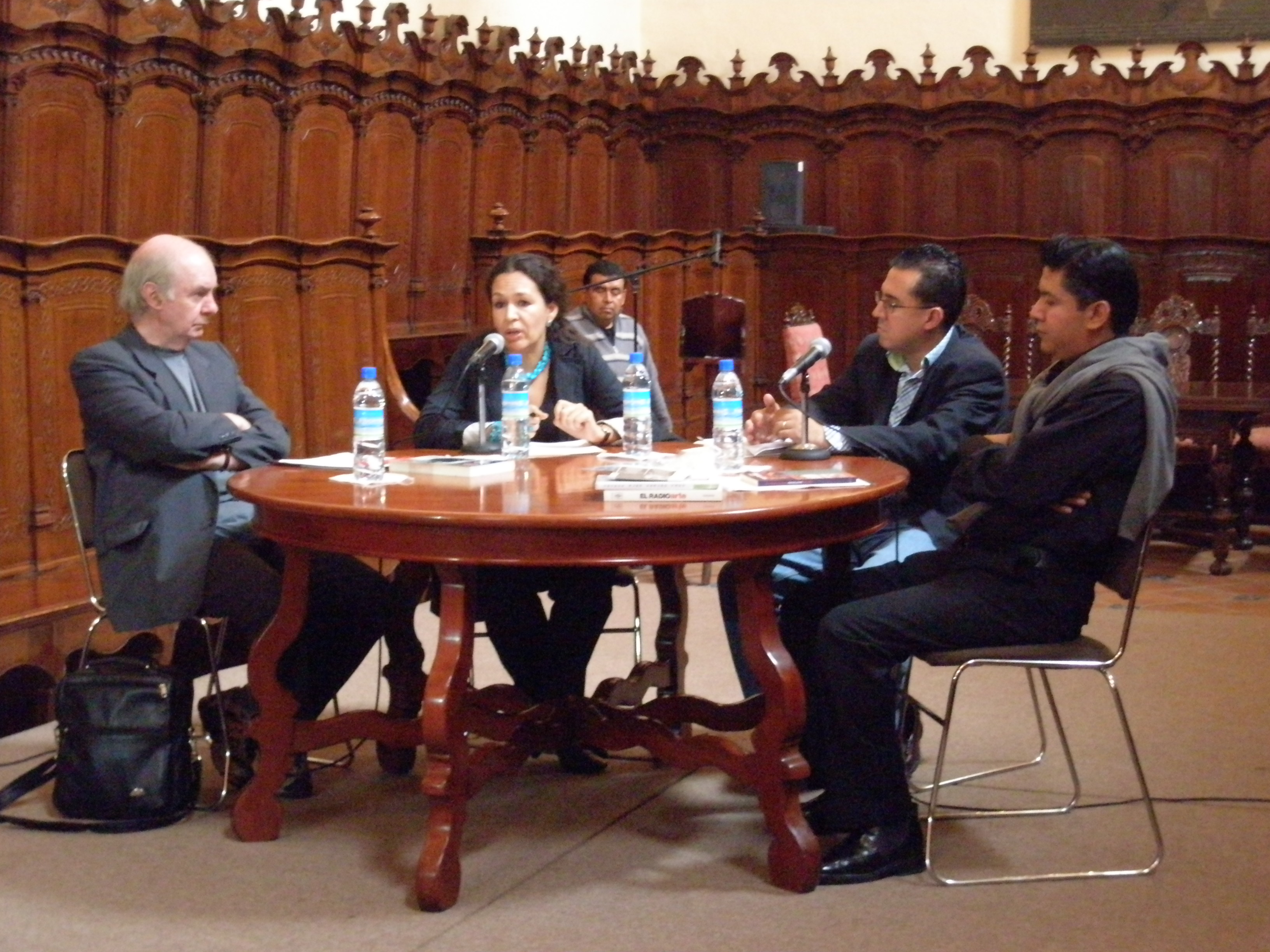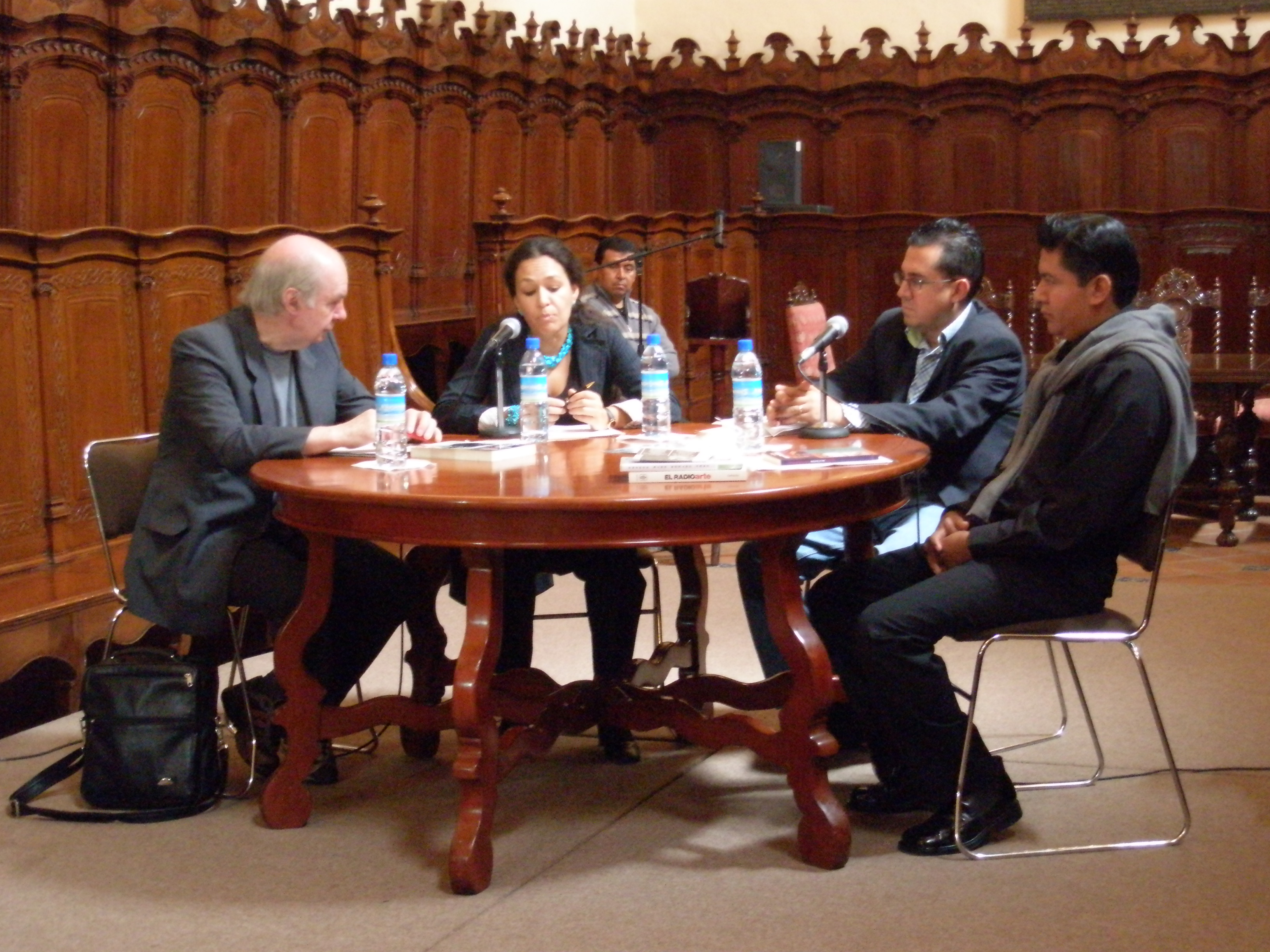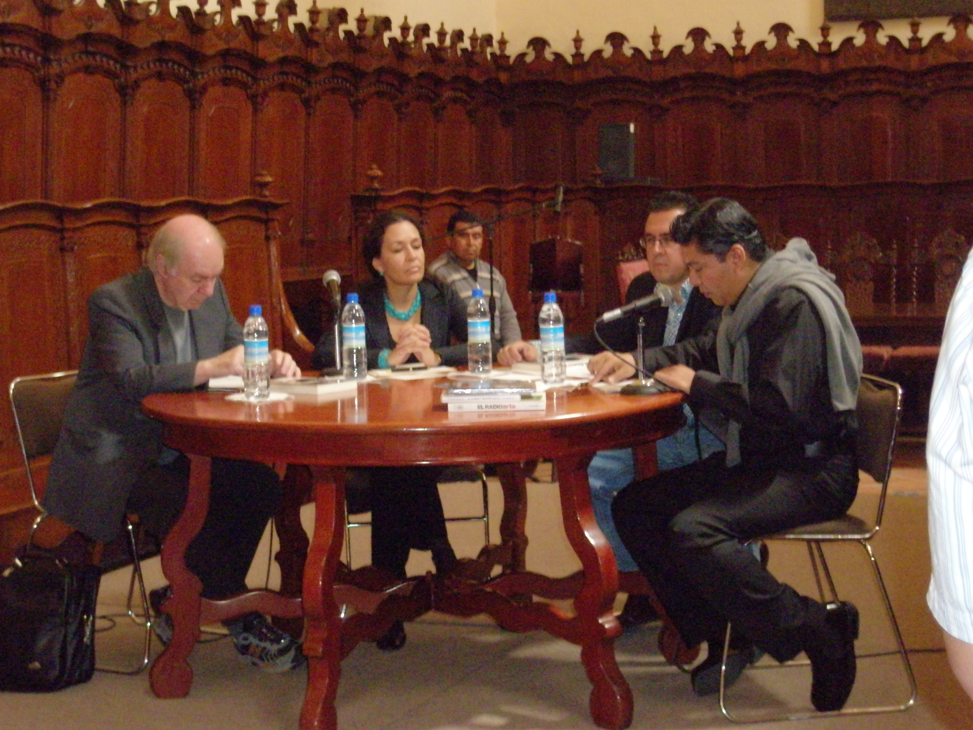 2008. Presentación del Primer Seminario de Arte Radiofónico en la Universidad Autónoma de Puebla, el cual fue inaugurado e impartido por la Dra. Lidia Camacho y el filósofo Jorge Juanes, en el Paraninfo de la BUAP.