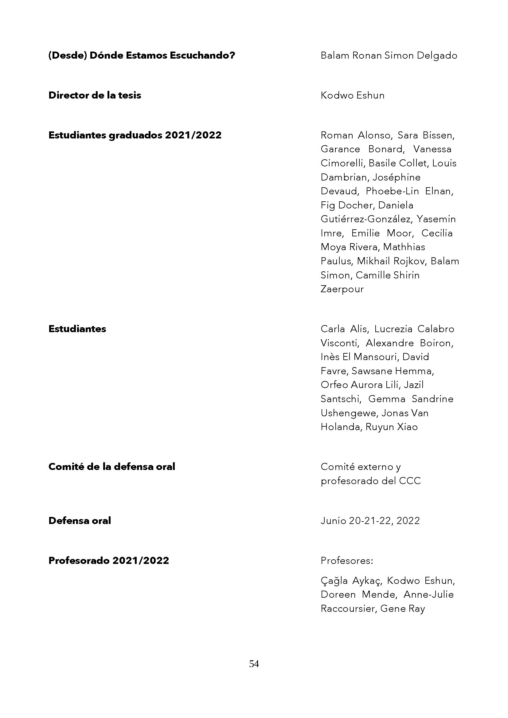 Agradecemos muy sinceramente que algunas de las ideas de nuestro ensayo Ética Política de la Escucha hayan sido útiles como insumo epistémico para el título y parte de la estructura del tercer capítulo de la tesis de investigación de Balam Ronan, con la cual obtuvo en 2022 el grado de Maestro en Artes de la Universidad de Arte y Diseño de Ginebra (Suiza).