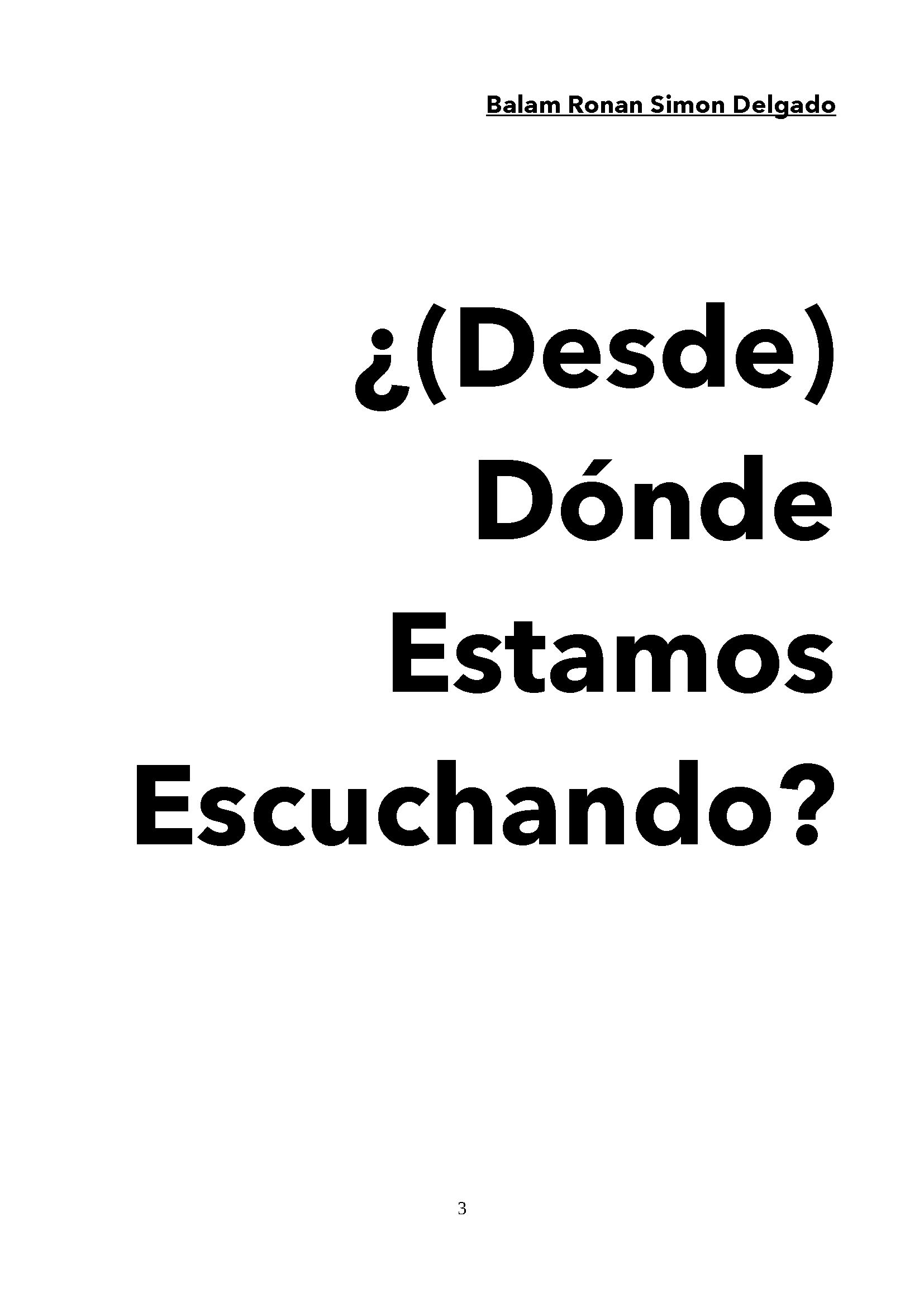 Nuestro ensayo Ética Política de la Escucha forma parte de la tesis de investigación de Balam Ronan con la que obtuvo la Maestría en Artes de la Universidad de Arte y Diseño de Ginebra (Suiza)