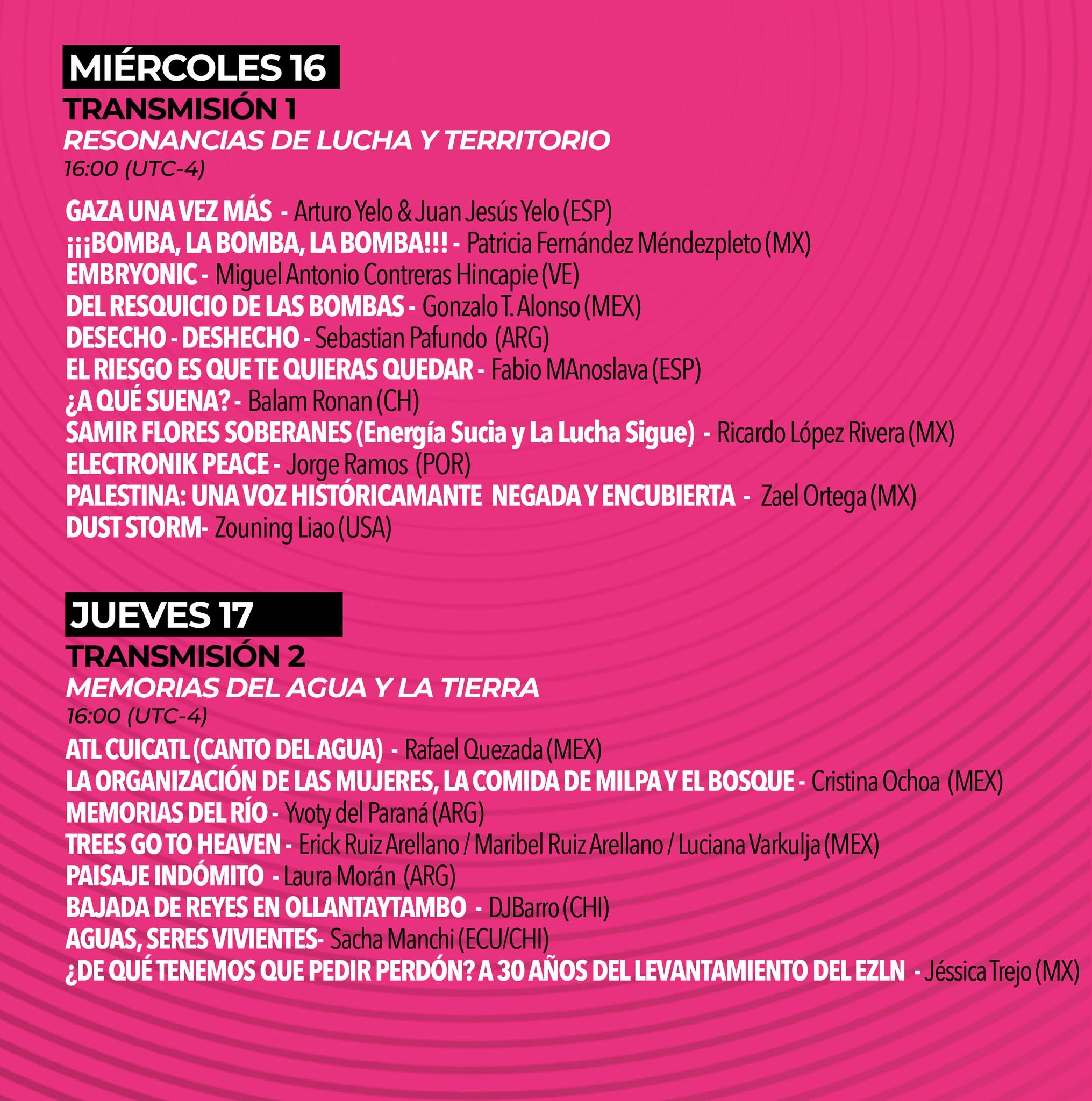 Estas dos obras fueron comisionadas por el Festival Internacional de Cine Indígena y Afrodescendiente (México) en el año 2018.
